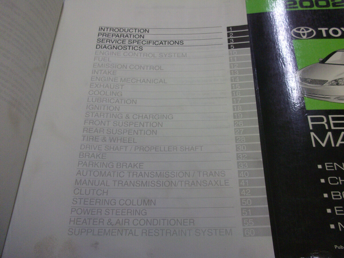 2002 Toyota Camry Servizio Negozio Riparazione Manuale Set W Ewd Collision