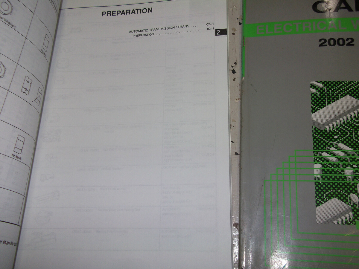 2002 Manuale di 2 volumi di 2 volumi di Toyota Camry Factory Set, Manuale di diagrammi di cablaggio e manuale di cablaggio e manuale di trasmissione automatica.