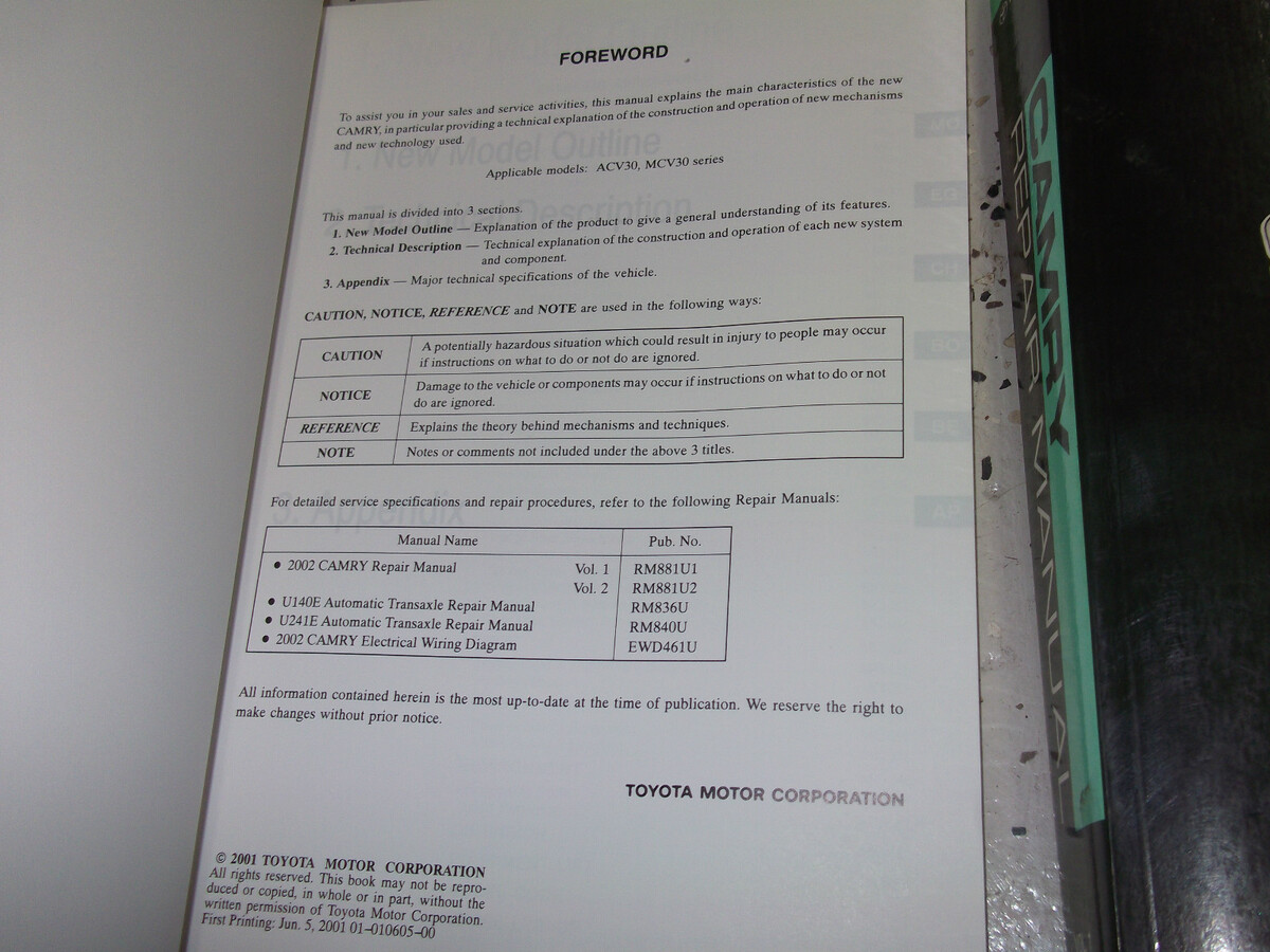 2002 Toyota Camry Servizio Negozio Riparazione Manuale Set Fabbrica W Ewd Mostra