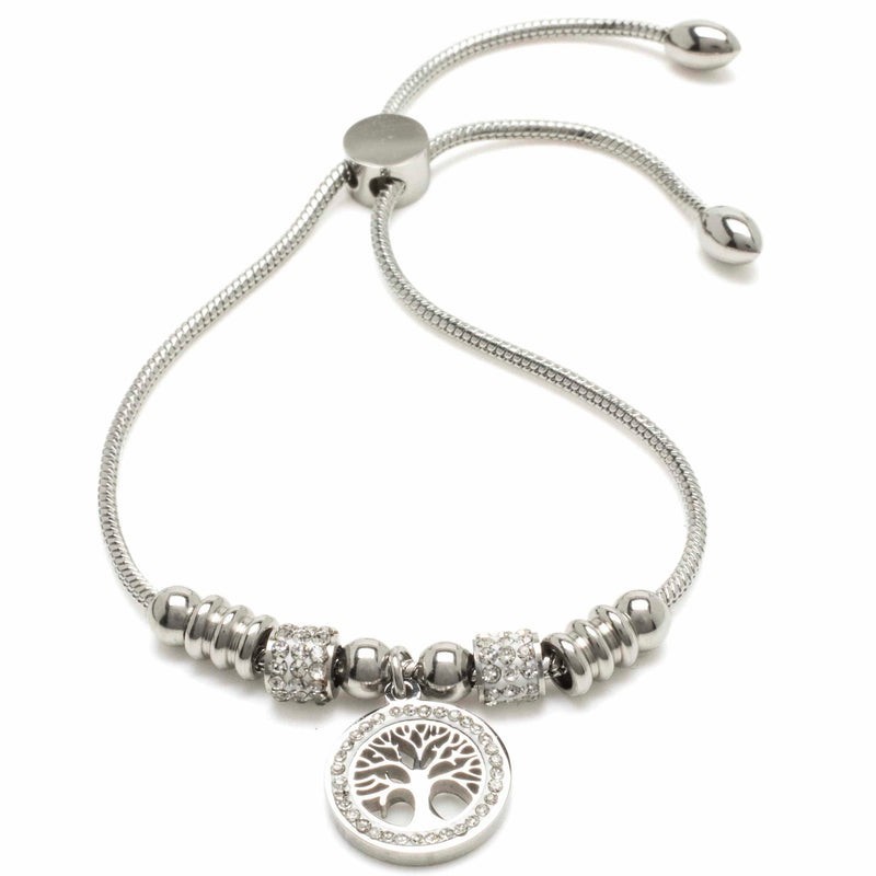 KALIFANO Steel Hearts Tree of Life Bead Bolo Bracelet