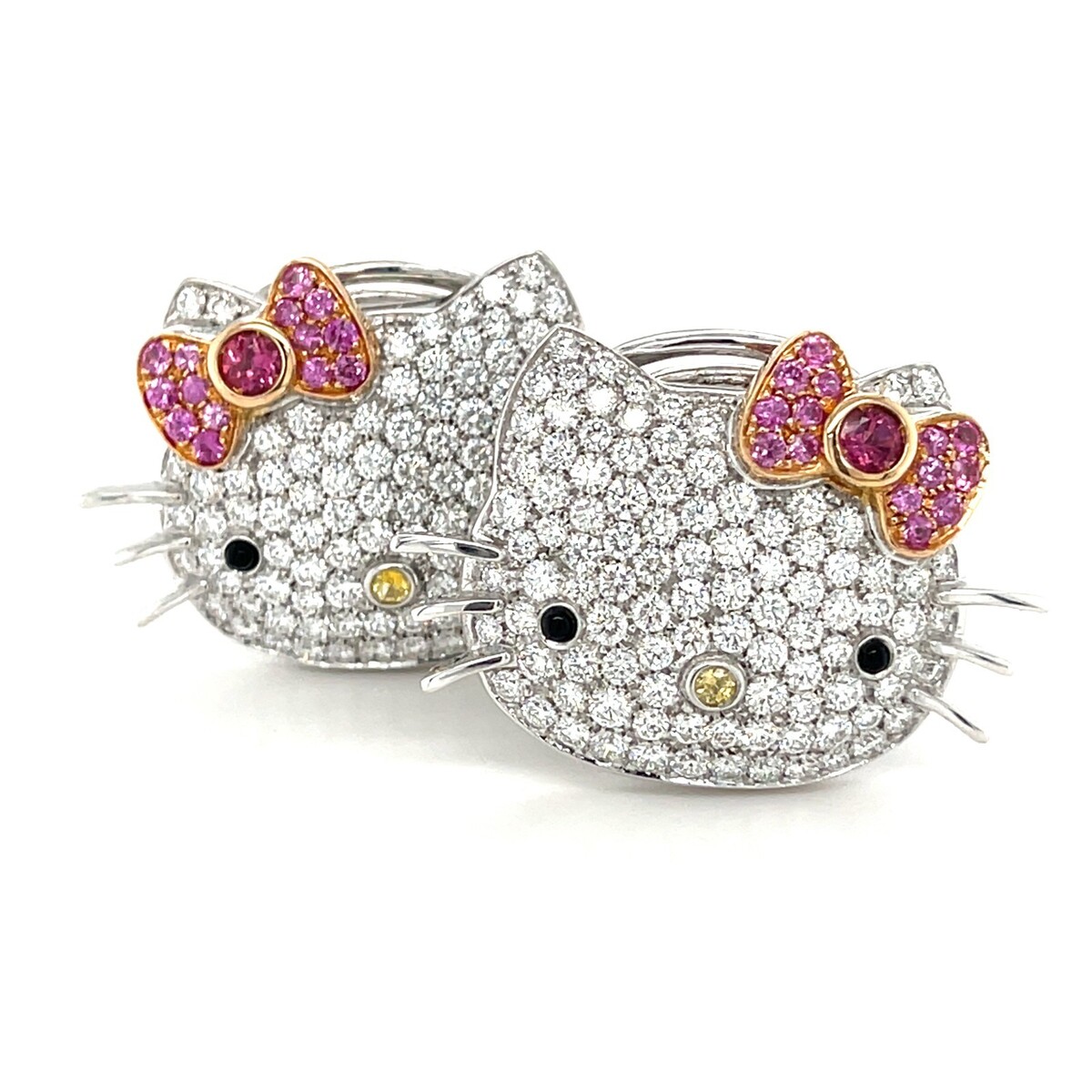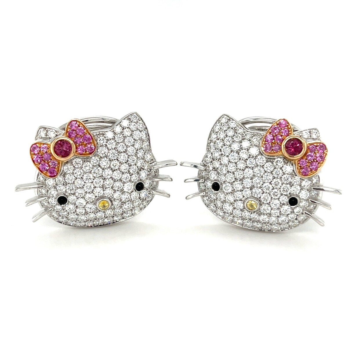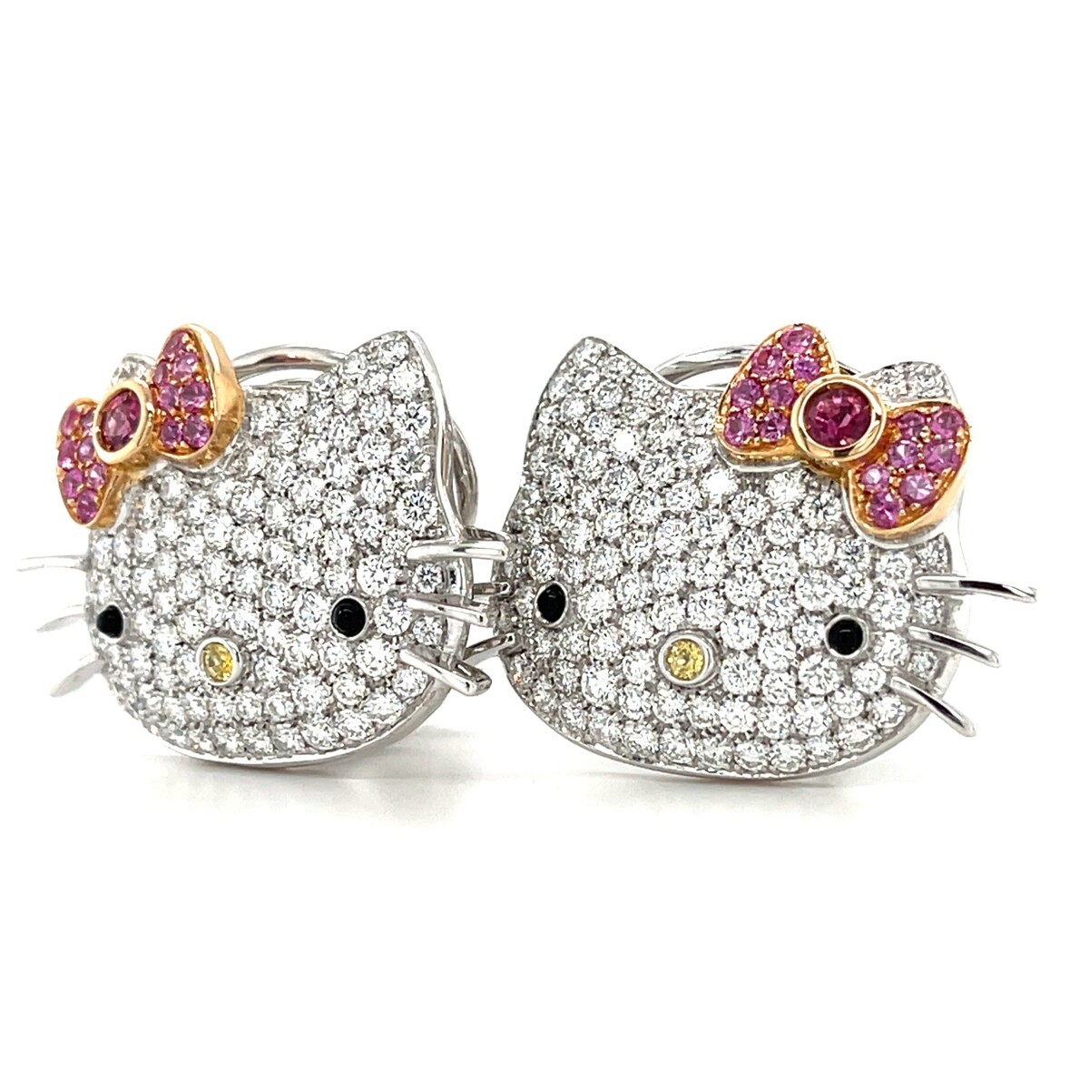 18K White Gold Happy Kitty Appx 5.4 CT Diamond Huggie Clip-on-Ohrringe Wunderschon!