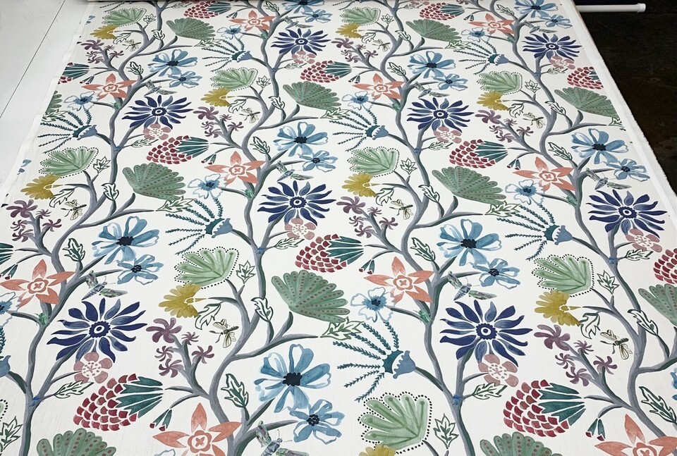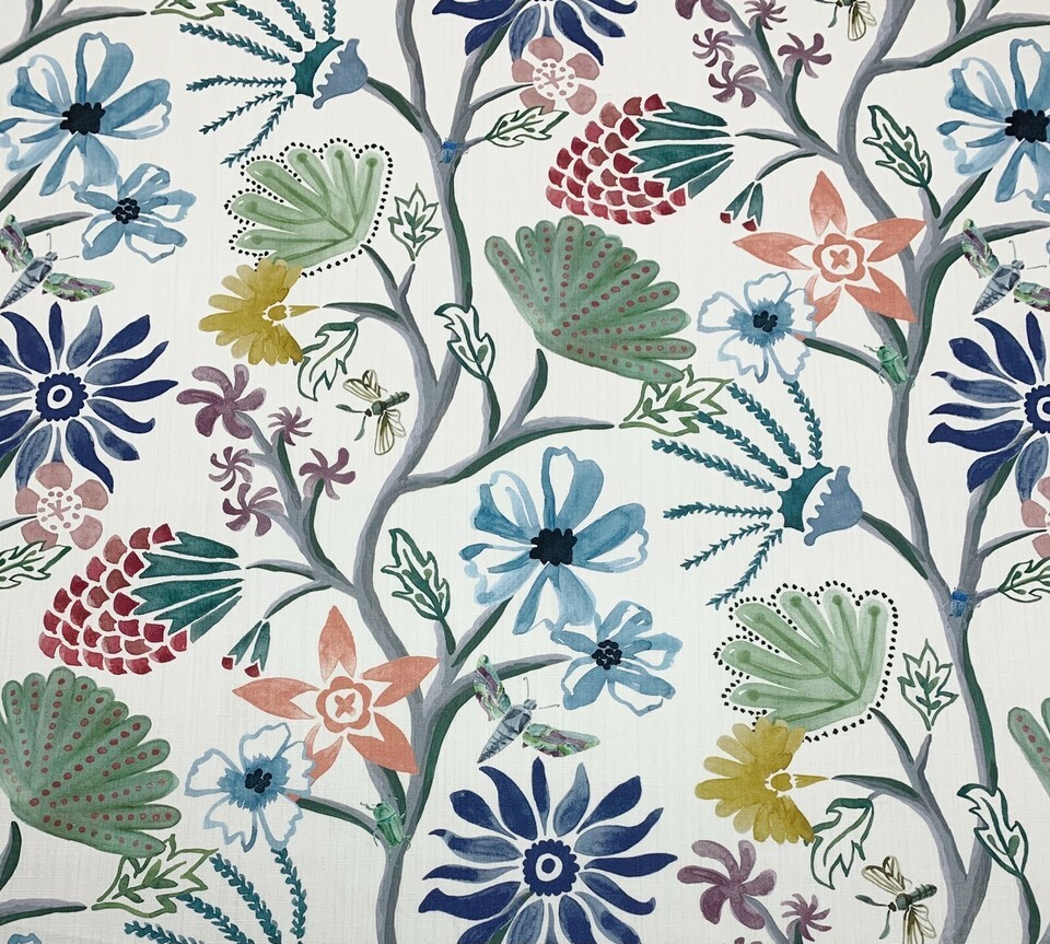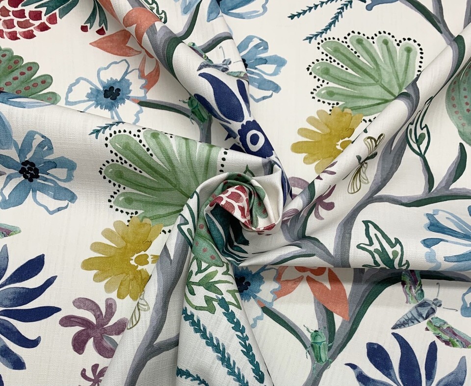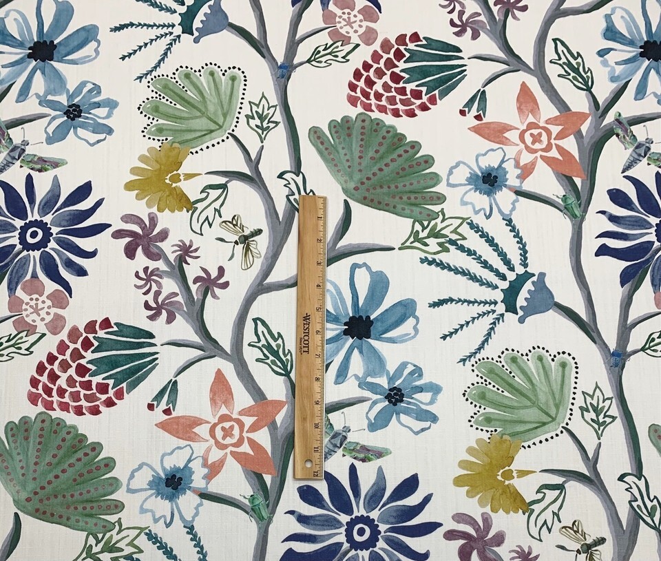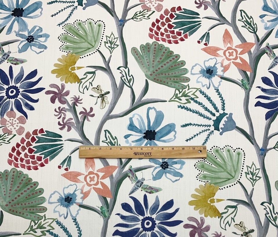 BALLARD DESIGNS MARLETTA MULTI GREEN FLORAL VINE COTTON FABRIC BY THE YARD 54"W