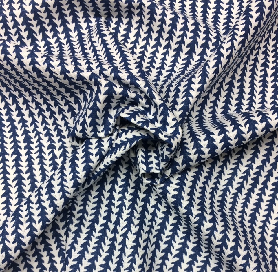 BALLARD DESIGNS QUINCY INDIGO BLUE GEOMETRIC VINE DESIGNER FABRIC BY YARD 54"W