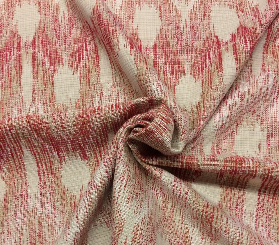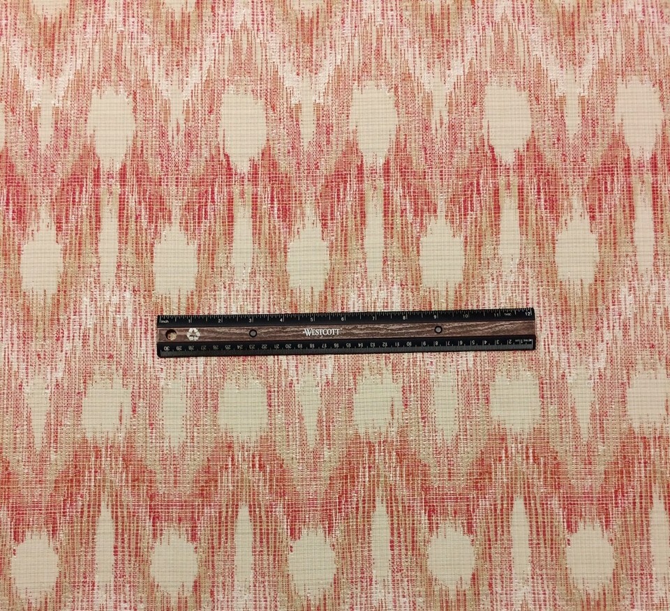 BALLARD DESIGNS VERETA RED CREAM IKAT WOVEN MULTIUSE FABRIC BY THE YARD 55"W
