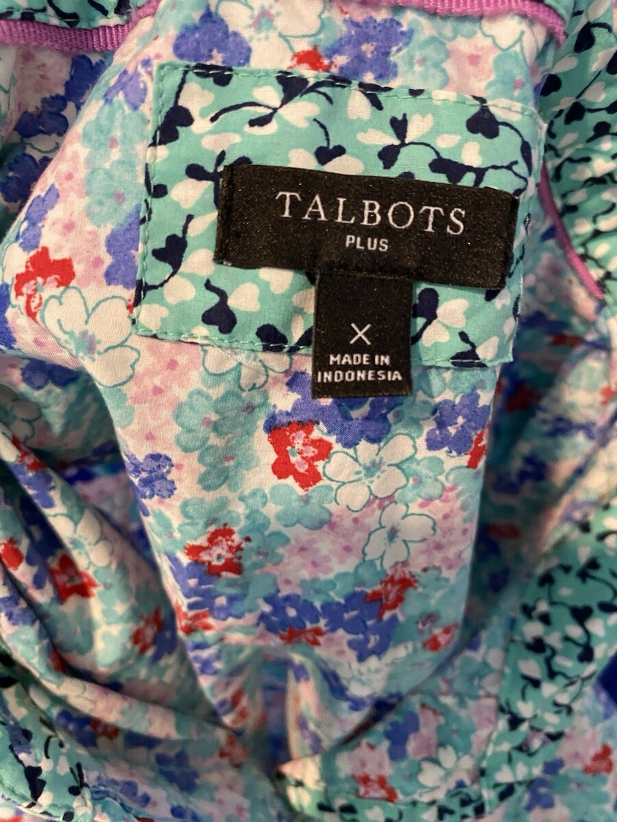 Talbots Plus Blue, Green, Red Floral Print Long Sleeve Blouse Size X