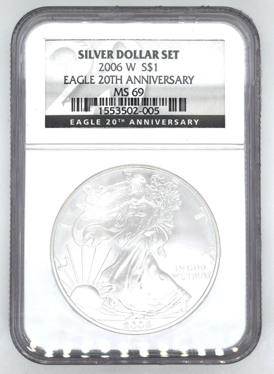 2006-W $1 Silver Eagle NGC MS69 Aquila 20° Anniversario Set Di Dollari D'Argento