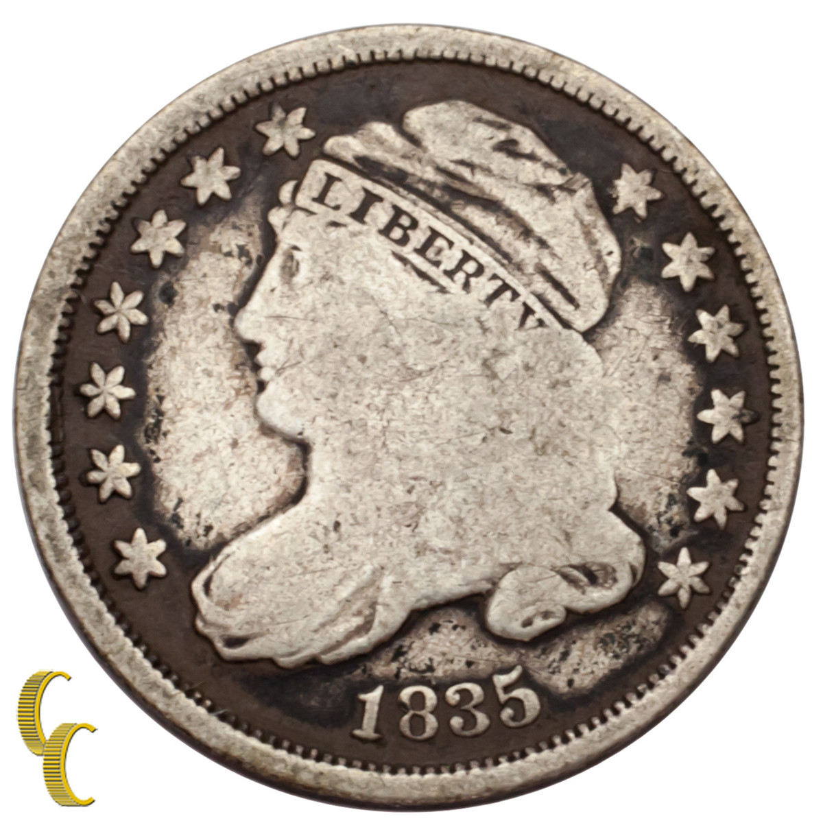 Dime D'Argento Con Cappuccio Del 1835 10C (In Ottime Condizioni, VG)