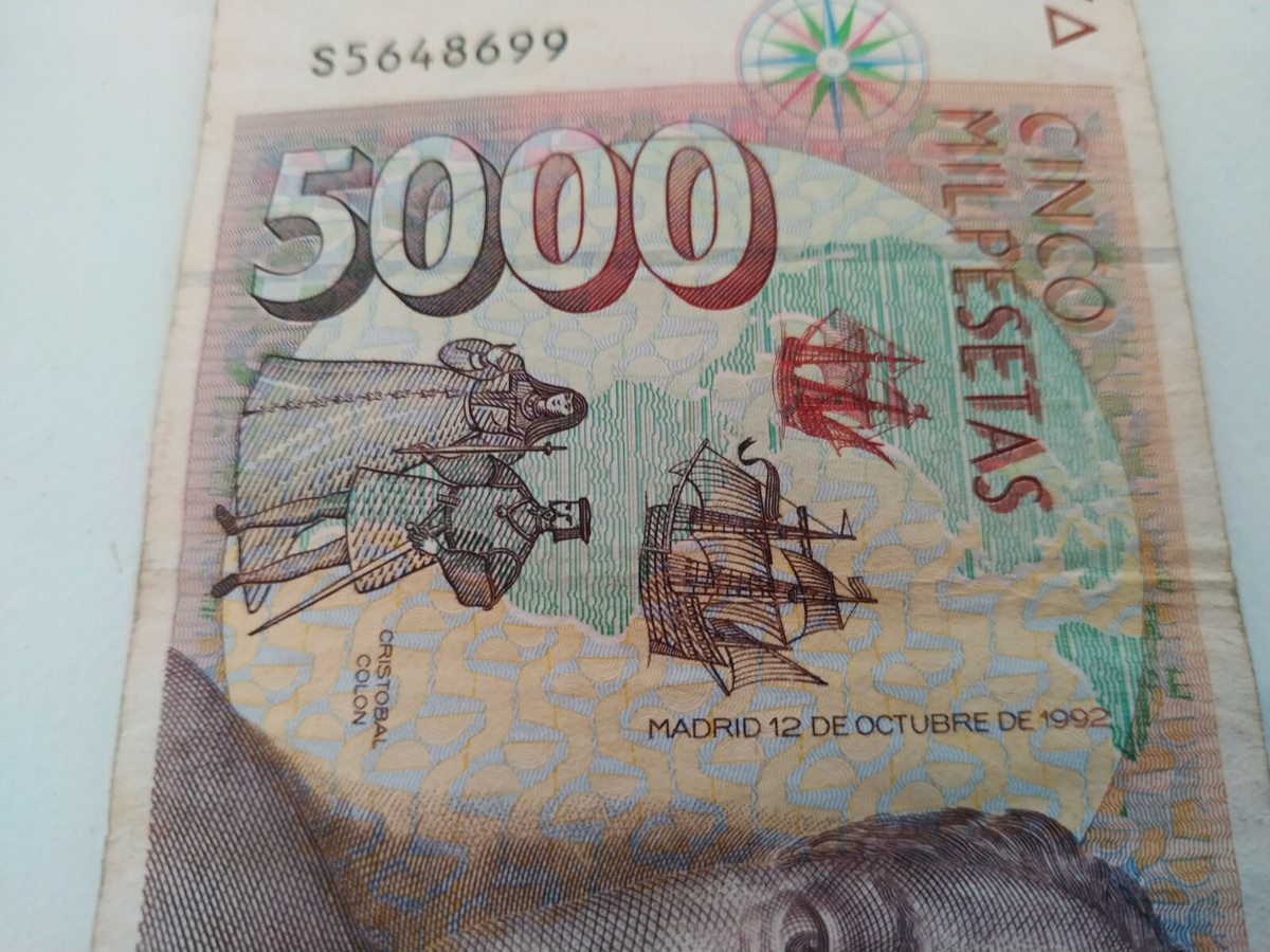 Banknotes de 5000 Pesetas cinco Mil 12 October 1992 Christopher Colon Series