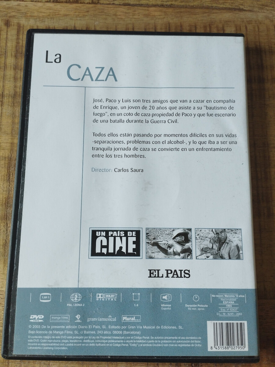 Spanisches del -Meisterwerk unter der Regie von Carlos Saura und produziert von Elías Querejeta, Caza es Ein Gleichnis de Symbolik sobre offenen Wunden geladende DieGuerra Bürgerlich. In un trockenen und storenden Landschaft geschossen, die Spannung entrelos Charaktere und Meisterschaftde Die Adresse dode Dieser Film ein wesentliches Stückparalos Liebhaberdel Kino de Autors. DVD -Ausgabe con ausgezeichneter Qualitat, ideal para Sammler oder Gelehrtedel Spanisches Kino.