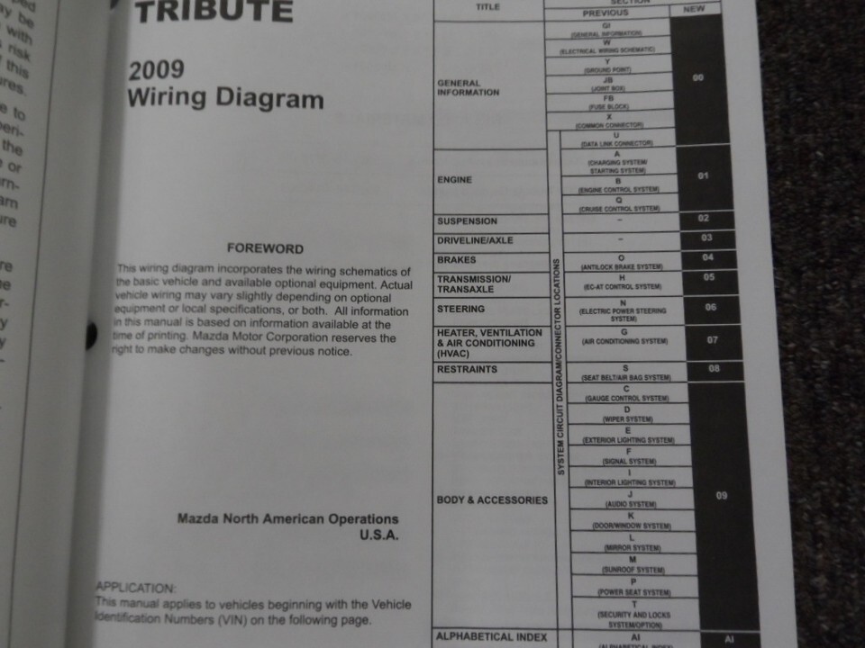 2009 Mazda Tribute Servizio Riparazione Negozio Manuale Set W Cavi Diagramma Ewd