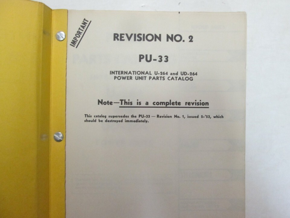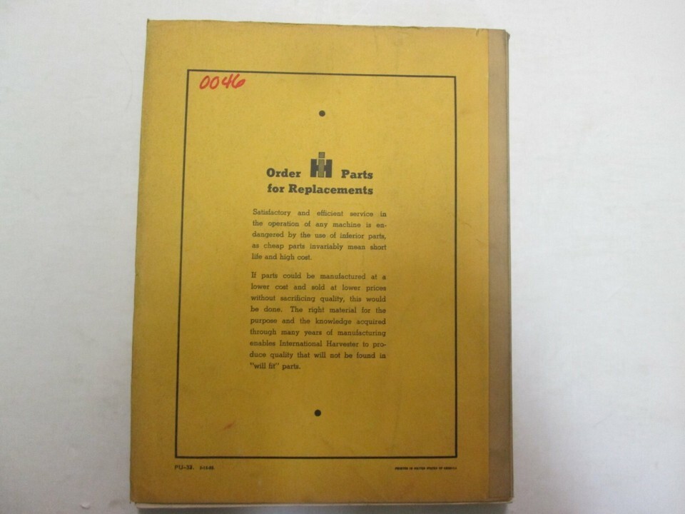 International Moissonneuse PU-33 U-264 UD-264 Puissance Unités Parties Catalogue