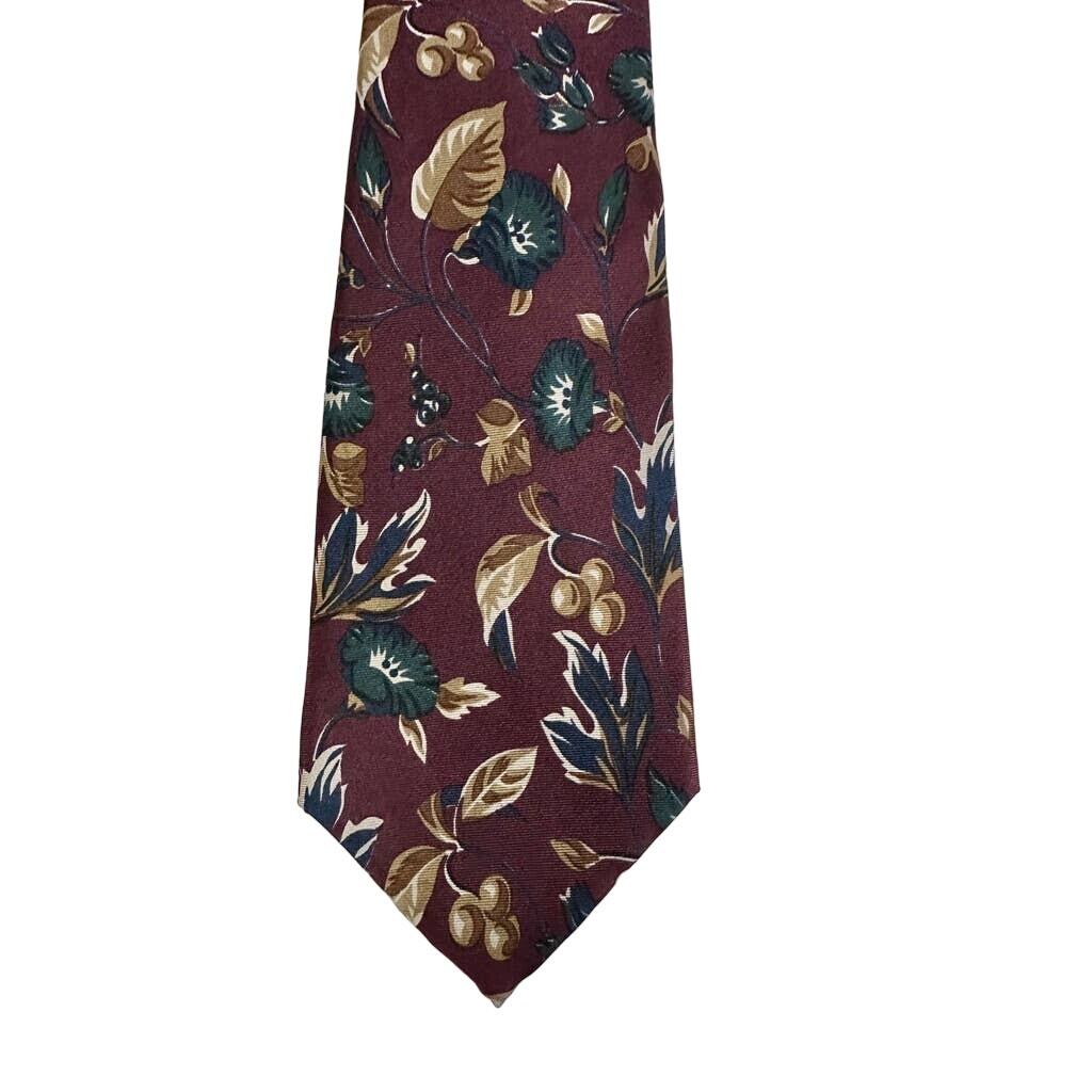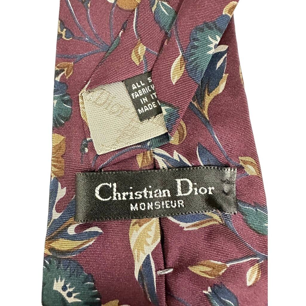 VTG Christian Dior Monsieur Burgundy Floral Silk Tie Italian Fabric 80s 90s