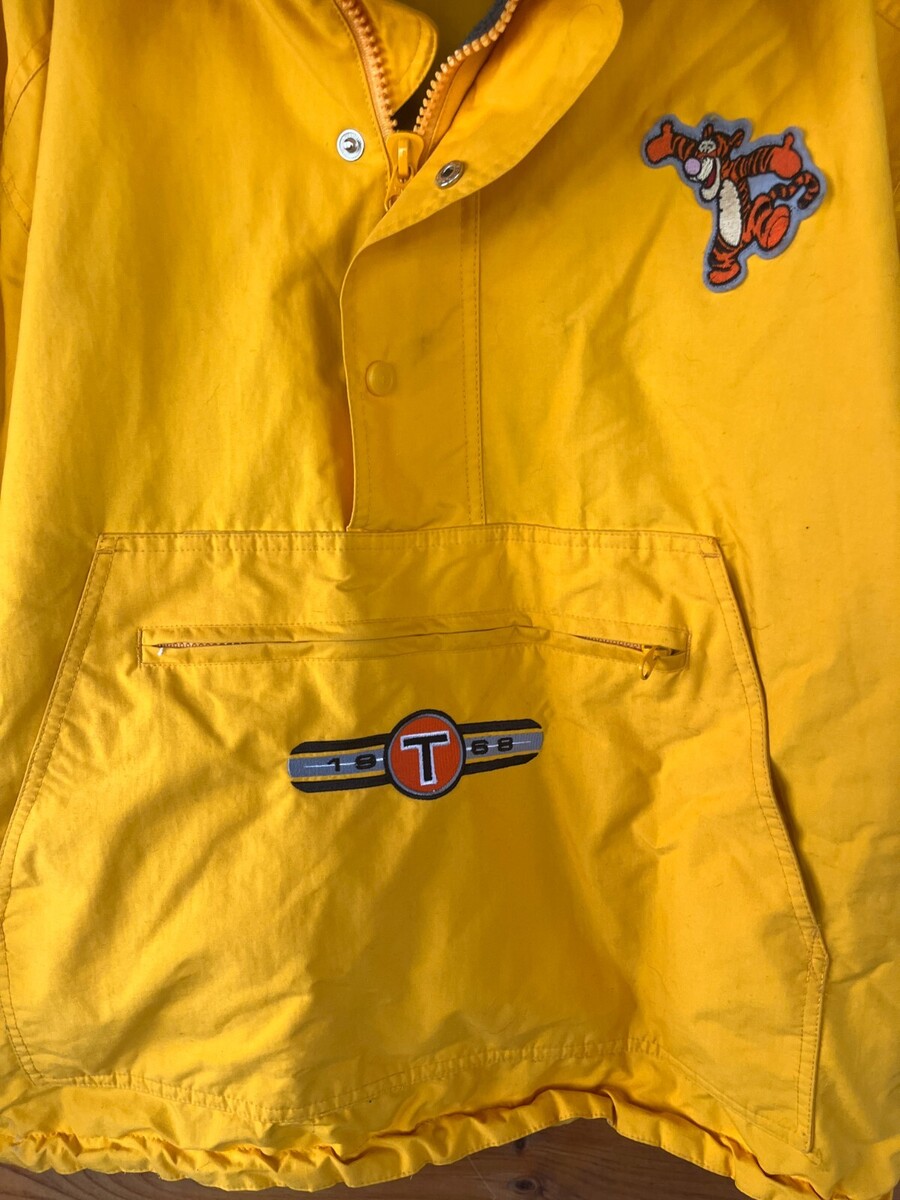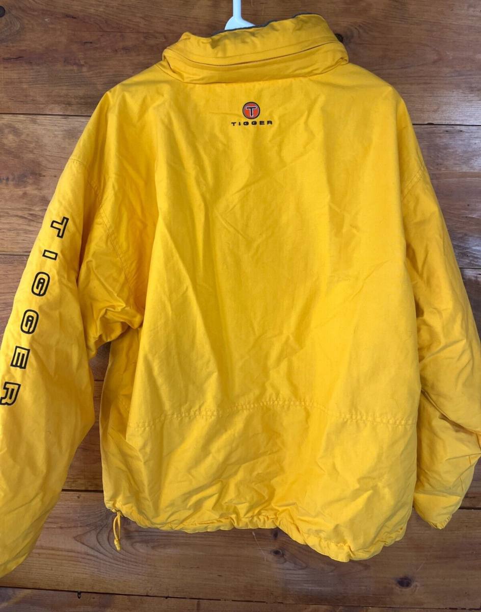 The Disney Store Tigger Nylon Pullover Jacket Fleece Lined Hood Yellow Medium