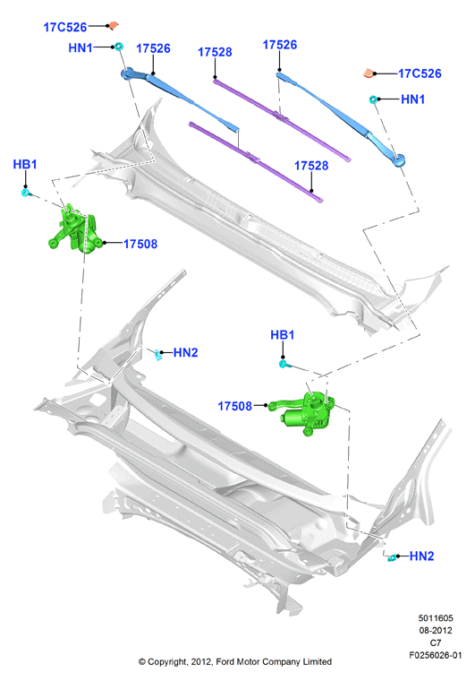 13-20 USED GENUINE OEM FORD FUSION RH WINDSHIELD WIPER MOTOR ASSY,PN DS7317504BG