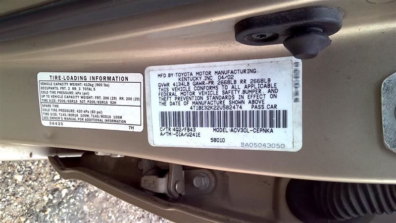 CAMRY 02-04 Front Axle; 4 cylinder, AT, L., w/o ABS