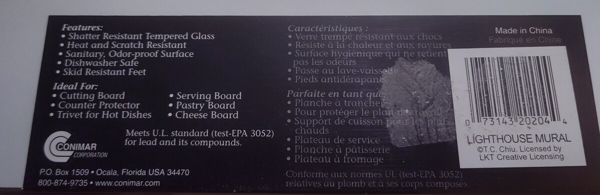 Made from durable tempered glass with non-slip rubber feet on the back to help keep the board stable while in use and to protect countertops. The artwork is sealed beneath the glass so it will not wear off with normal use.