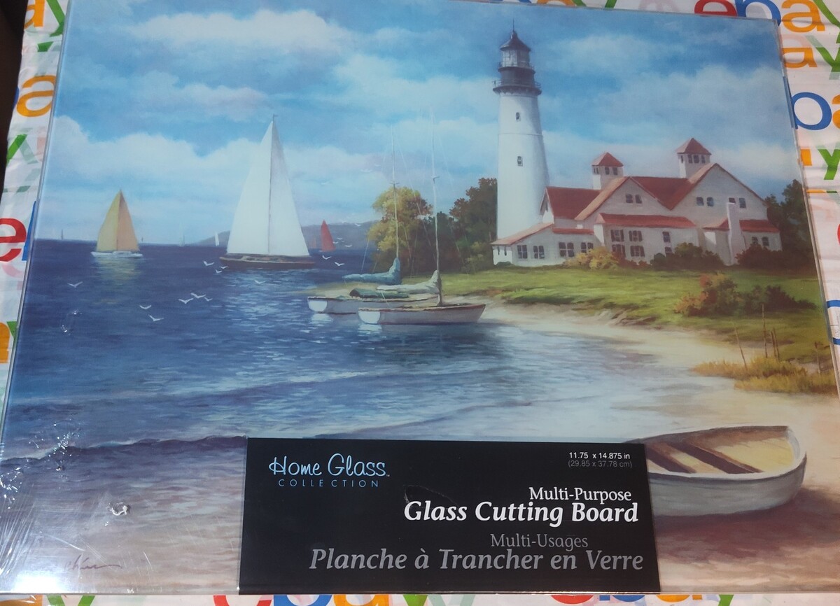 Lighthouse Coastal Scene Tempered Glass Cutting Board Counter Saver T.C. Chiu