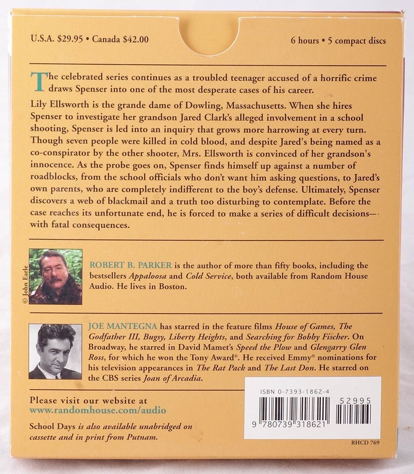 School Days - A Spenser Novel by Robert Parker (CD Unabridged) Audiobook