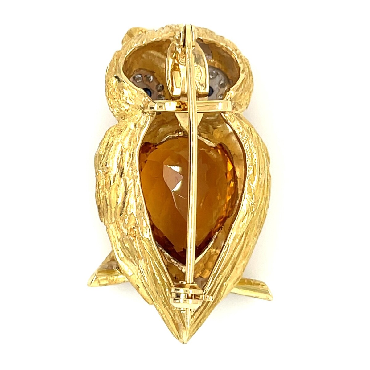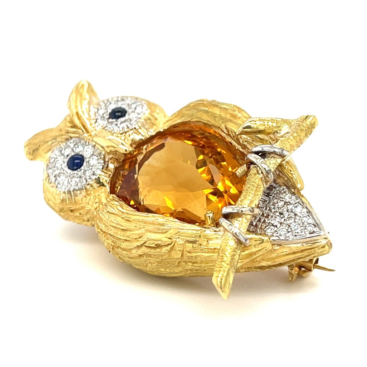 18k Yellow Gold Citrine Diamond Owl Brooch and 49 similar items