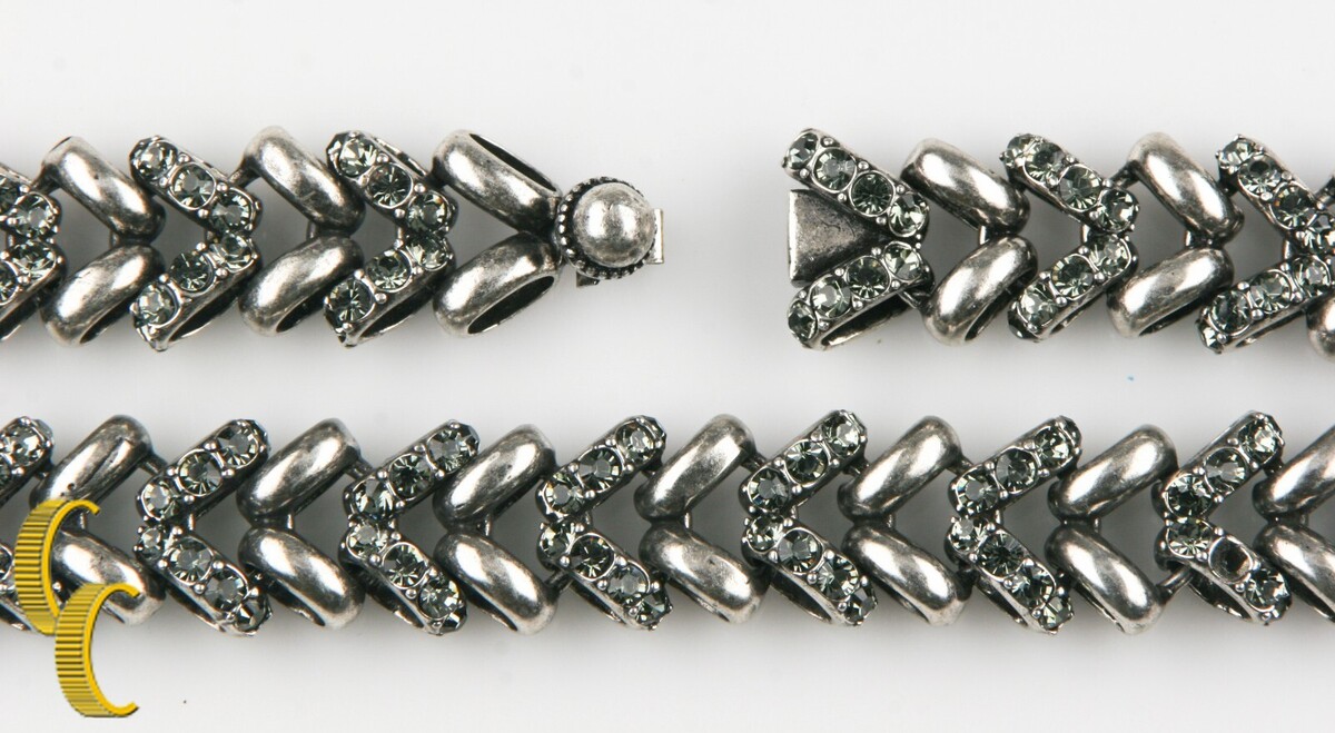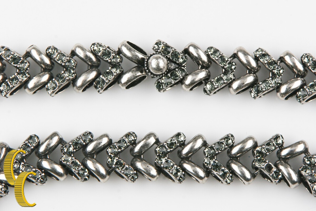 Schone lange, einzigartige, mit Kristallen auf jedem anderen Link in antik Silber Finish eingestuft
