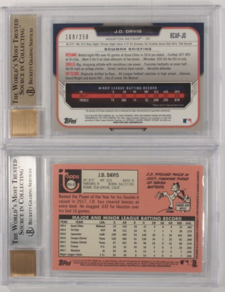 Lotto di 2 bg bgs topps/bowman jd davis baseball