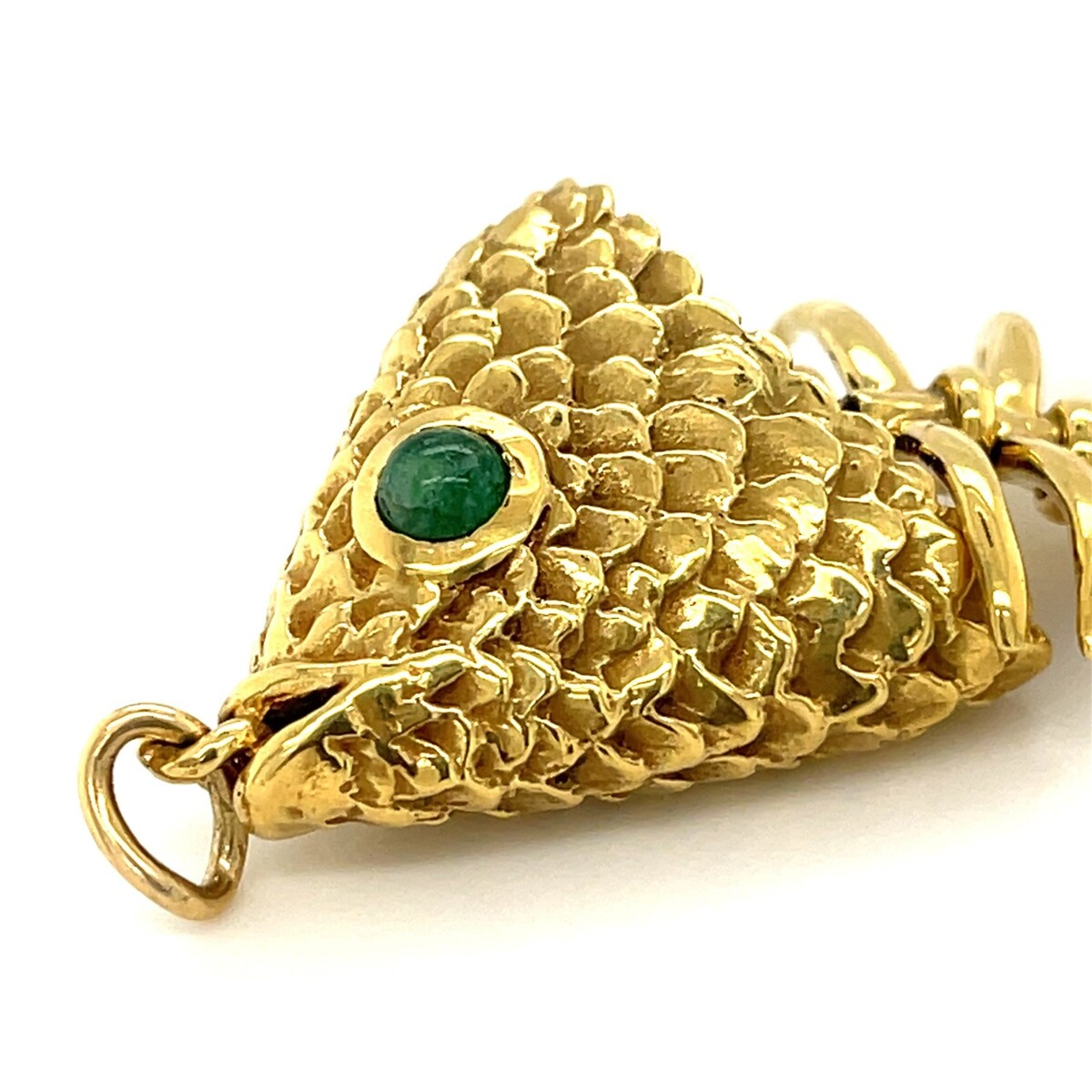Tiffany & Co.18k Oro Giallo Articolato Pesce Ciondolo Smeraldo Occhi