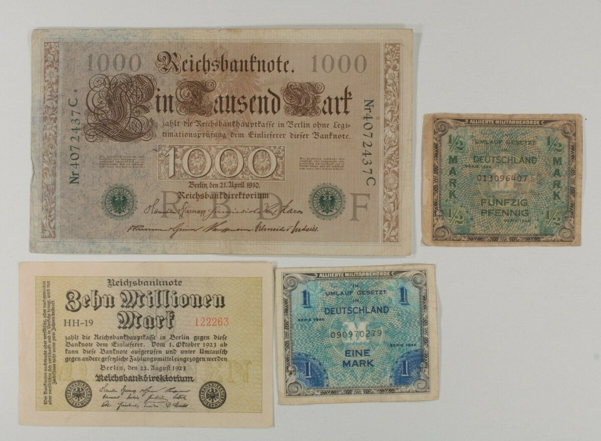 1910-1944 Allemagne 4-Notes Currency Kit Weimar Empire Allied Militaire