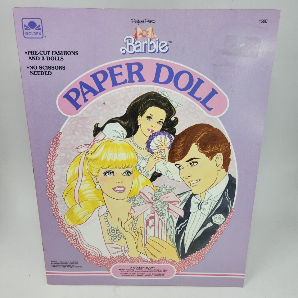 VINTAGE 1988 PERFUME PRETTY BARBIE KEN PAPER DOLL MATTEL BOOK NEVER USED GOLDEN
