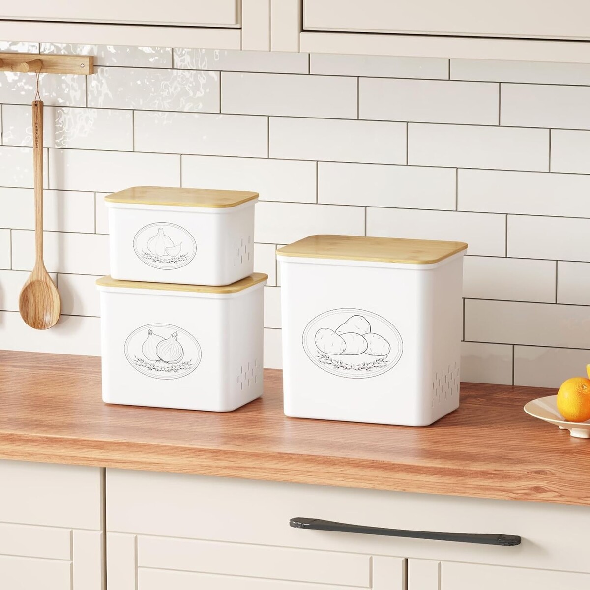 Invest in quality kitchen storage solutions that stand the of time?order the White Plastic Potato, Onion Garlic Storage Bins Set today and transform your kitchen into a sanctuary of freshness and style!