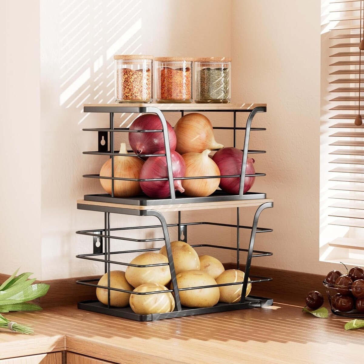 Versatile 2 Pack Onion and Potato Storage Bins - Stylish Stackable Organizers