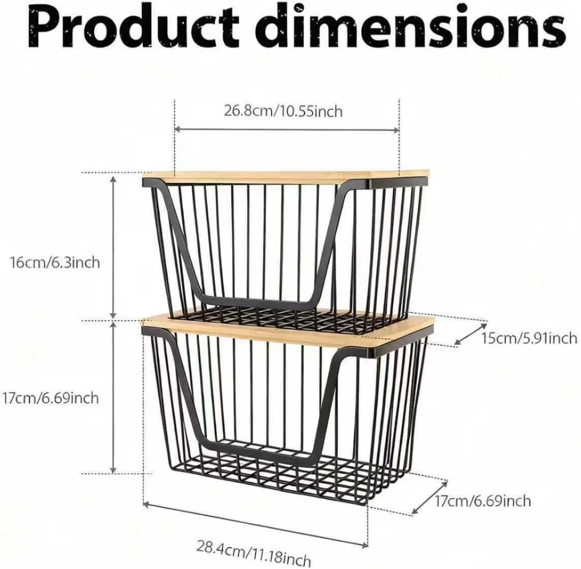 Modern Stackable Storage Bins for Fruits, Vegetables - 2-Pack Iron Baskets