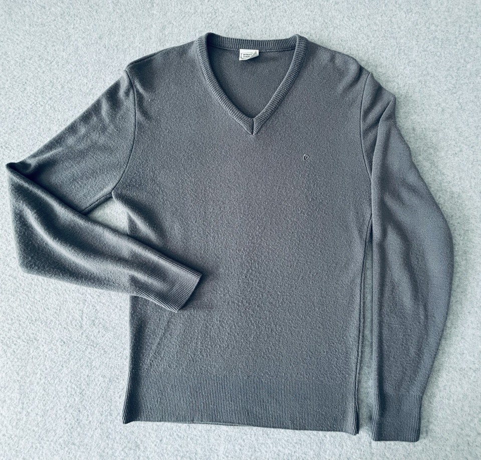 Pierre Cardin Vintage Long Sleeve Jumper Sweater - Gray - Men's Large V Neck