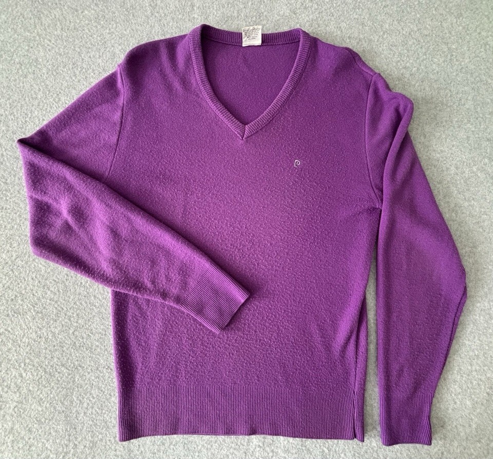Pierre Cardin Vintage Long Sleeve Jumper Sweater - Purple- Men's Large V Neck