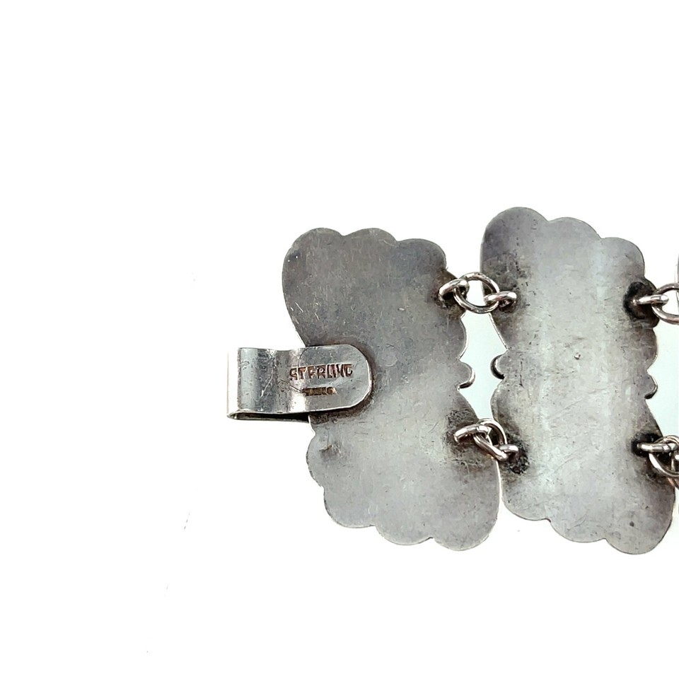 Vintage Mexico Sterling Silver Panel Bracelet Signed JE, 6.25" 36gr