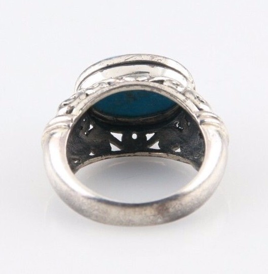 Vintage Sterling Silver Ring with Oval Light-Blue Turquoise (Size 6) Intricate