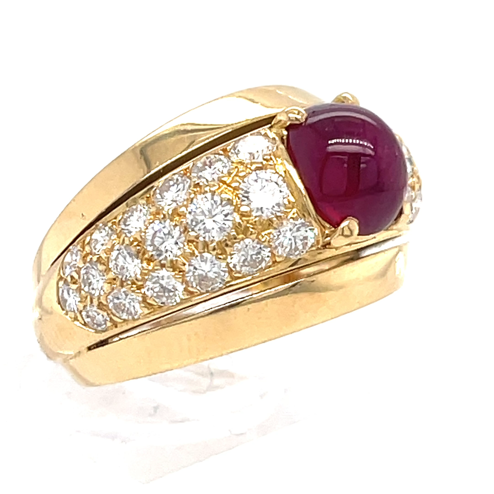 Cartier 18k Yellow Gold 2.25ct Cabochon Ruby 1.30ct Diamond Solitaire Ring Sz 6