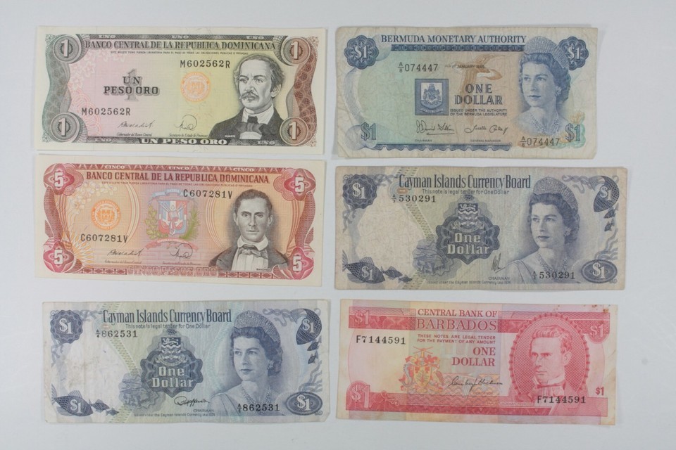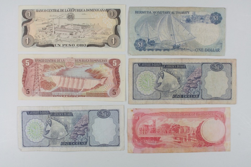 Caribbean Nations 6-Notes Lot // Barbados, Bermuda, Caymans & Dominican Republic