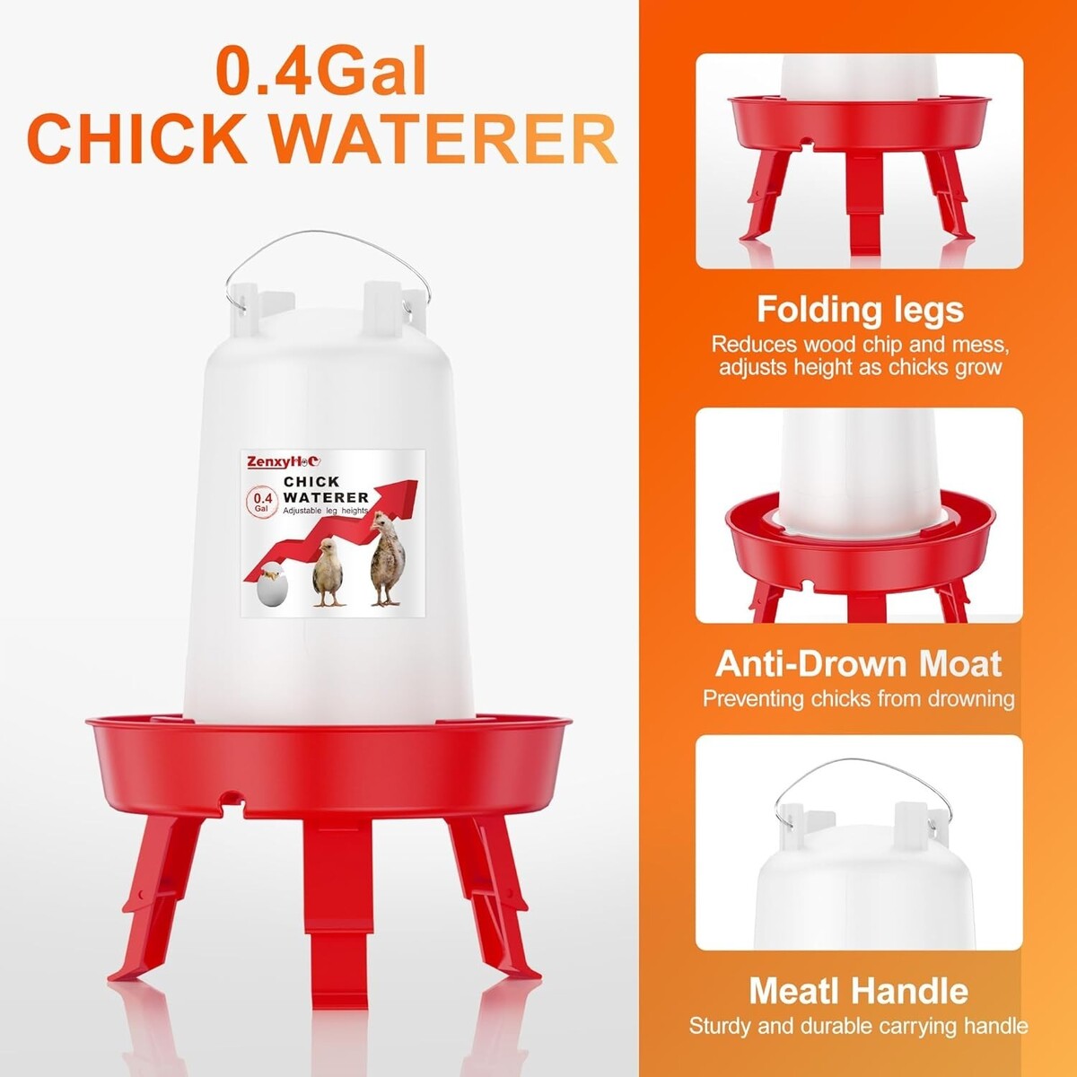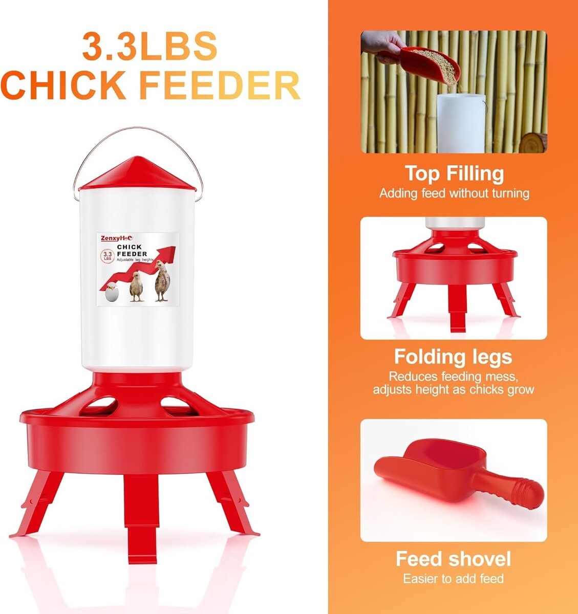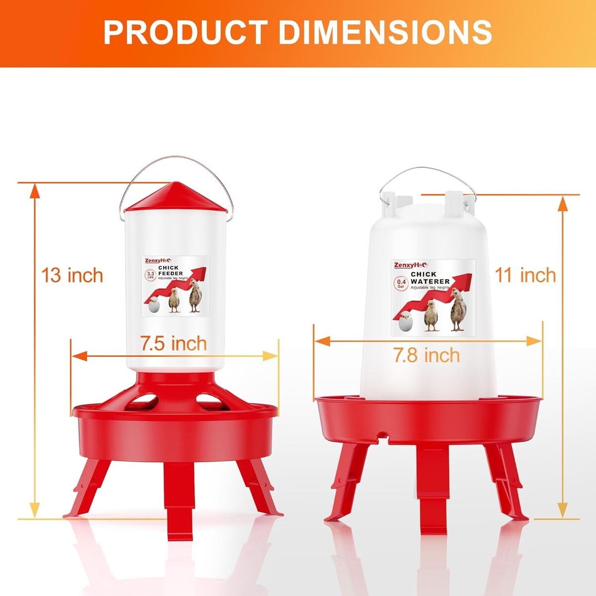 This thoughtfully curated package includes everything you need to nourish your new flock, featuring a 0.4-gallon chick feeder and a 0.4-gallon chick waterer?both equipped with adjustable legs. Designed to grow with your chicks, this set provides a perfect, flexible setup for your brooder.