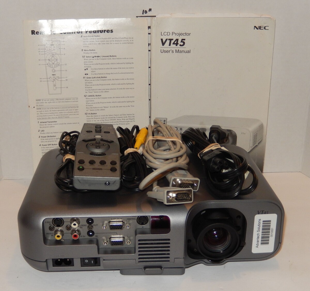 For Sale is a Used but in good working Condition NEC LCD Projector Model VT45 1024x768 Ethernet VGA RCA SVideo Case Accessories. Has been Tested and Works. Please see photos for more details. If its Pictured then its Included if its Not then its Not included. Please ask any and all questions prior to purchasing.. Fast same or next day shipping with delivery confirmation within the U.S.