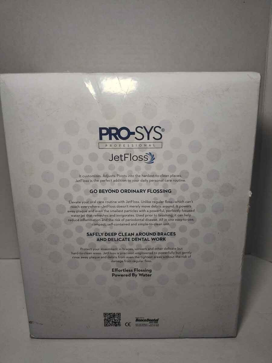 Brand new PRO-SYS Jet Floss Professional Water Flosser by Benco. This professional-grade oral irrigator is designed for deep cleaning between teeth and below the gumline, helping remove plaque and debris where brushing alone can?t reach.