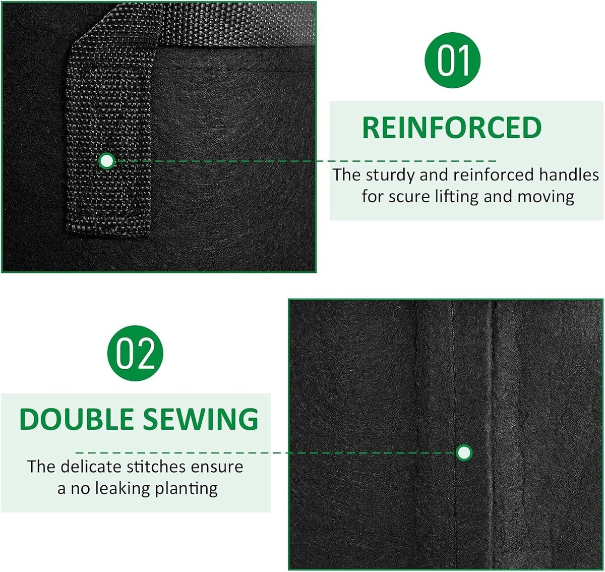 Enhanced Handle Process: Each bag features wide polypropylene ribbon handles with reinforced lining for optimal tension, making it a breeze to move filled bags with soil and plants.