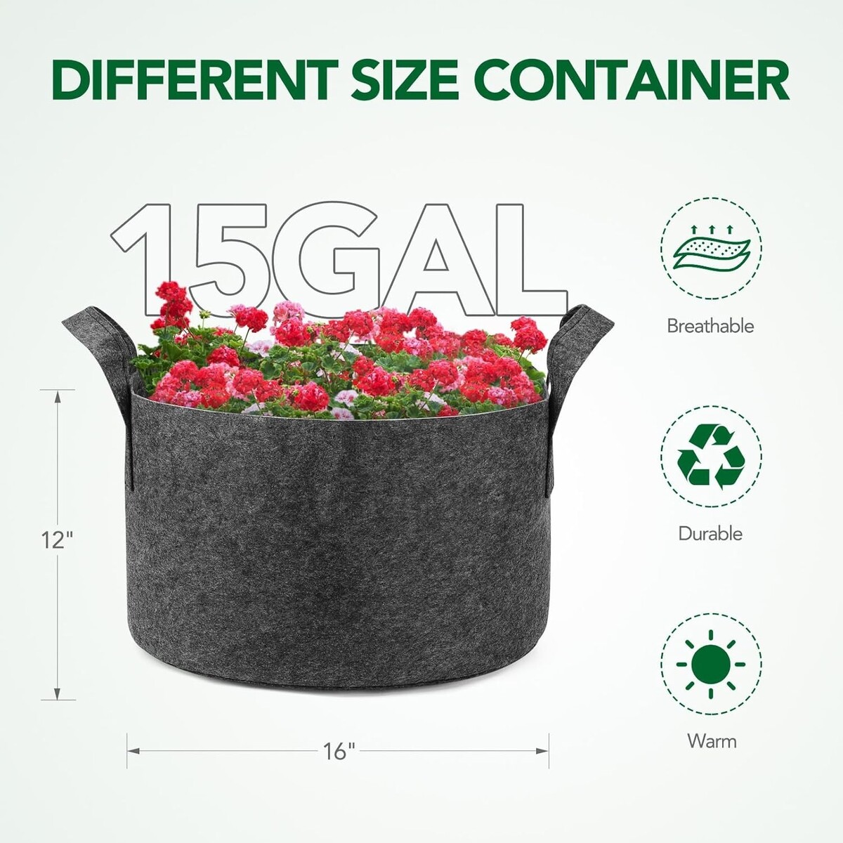 12-Pack 15 Gallon Heavy Duty Fabric Grow Bags – Aeration Great for All Plants