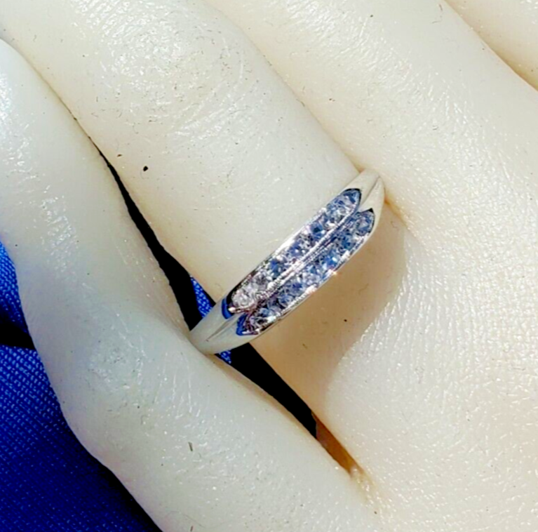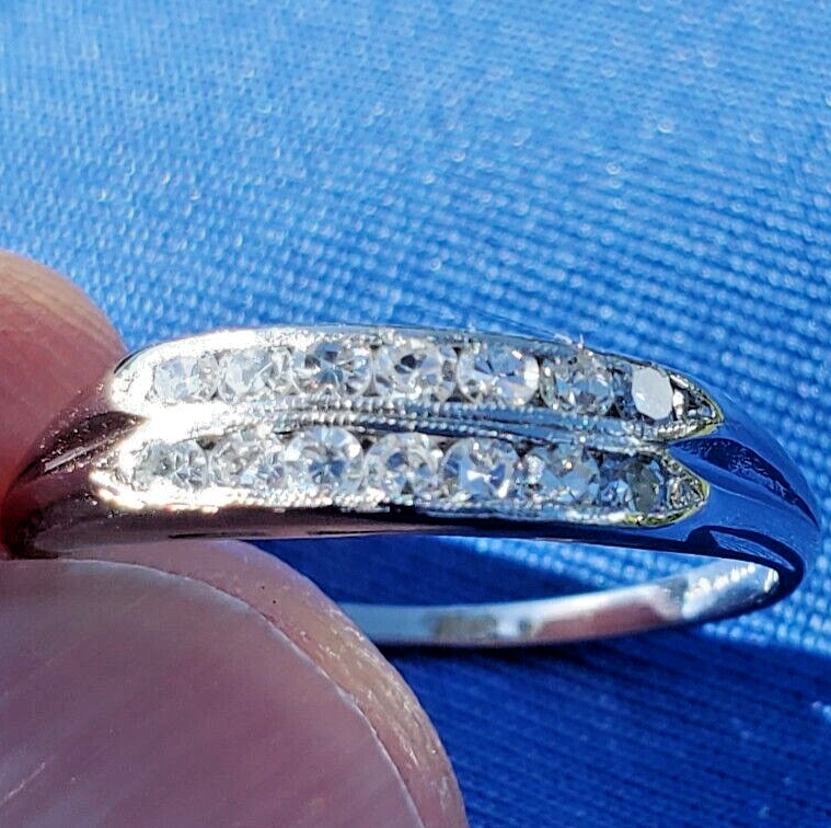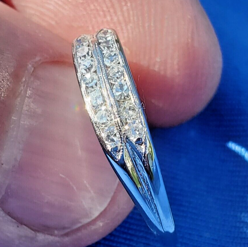 EARTH MINED DIAMOND Wedding Band Double Row Antique PLATINUM Anniversary Ring 7