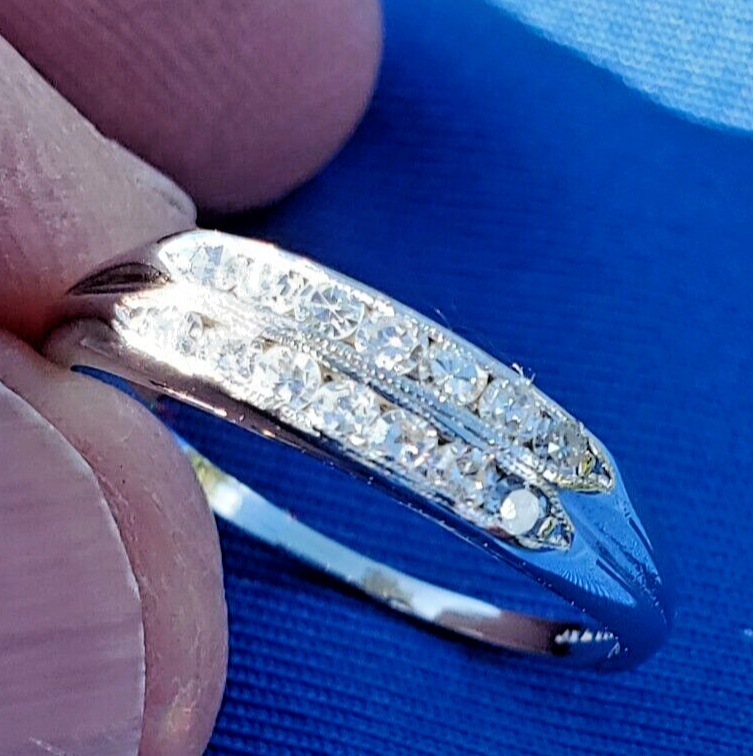 ELEGANT DIAMOND PLATINUM ORIGINAL GATSBY ERA WEDDING RING.