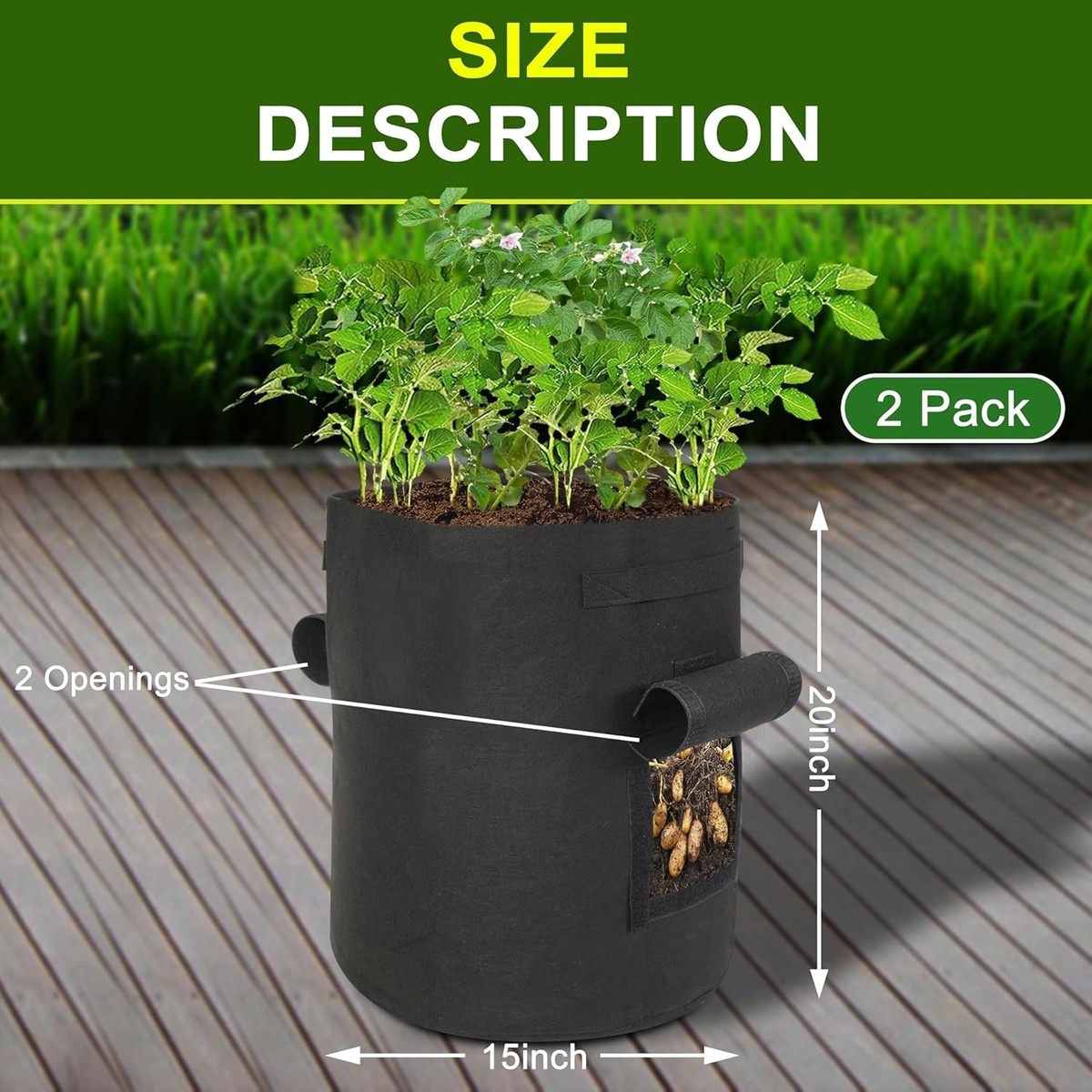 Lightweight 15 Gallon Grow Bags with Breathable Fabric - Perfect for Vegetables