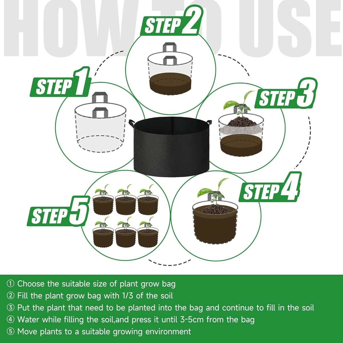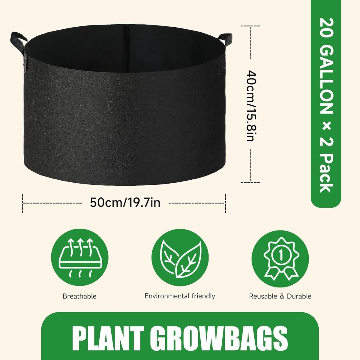 Reusable 20 Gallon Fabric Grow Bags with Sturdy Handles - Perfect for Vegetables