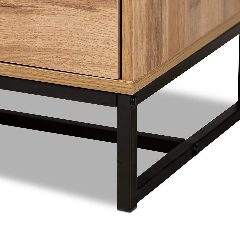 Modern Contemporary Industrial Oak Finished Wood & Black Metal 2-Drawer TV Stand