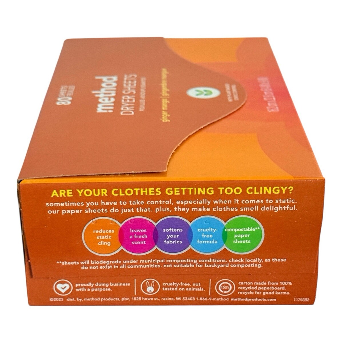 Method Dryer Sheets Ginger Mango 80 Sheets Sealed