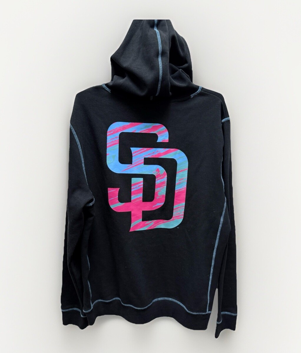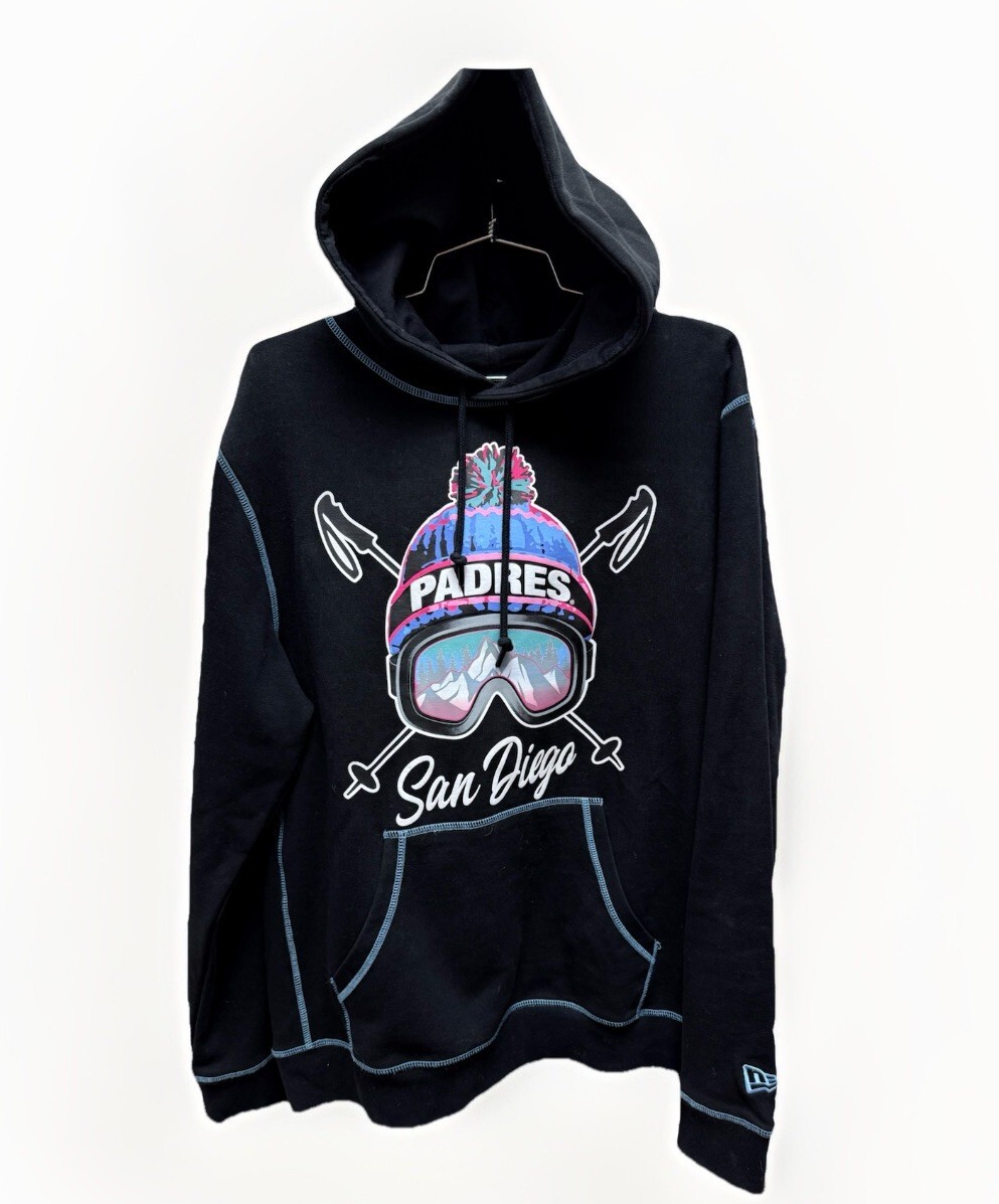 This product is a brand new without tags, officially licensed San Diego Padres 80's style New Era hooded sweatshirt in size medium.