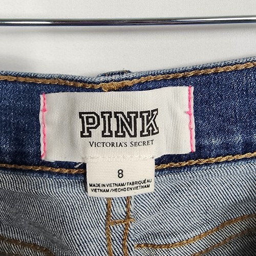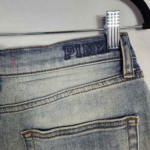 VS Pink Hi Waisted Cut Off Denim Shorts Women Sz 8 Blue Distressed 1.5" Inseam